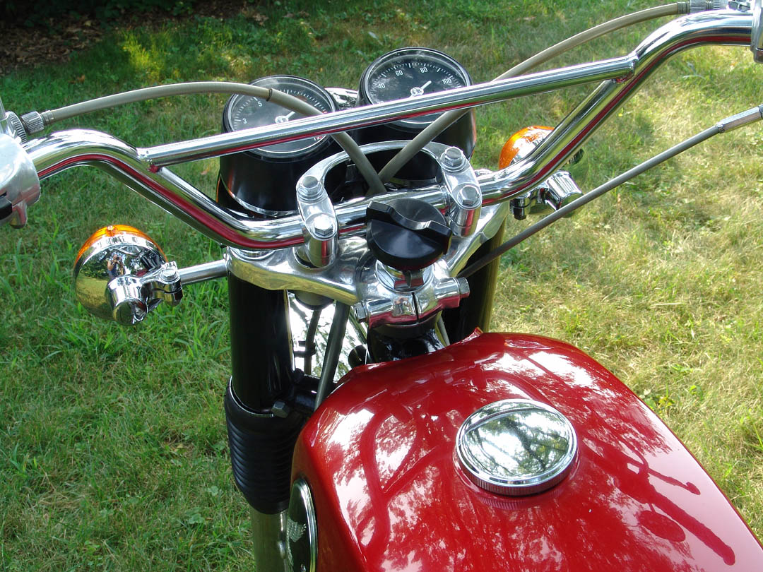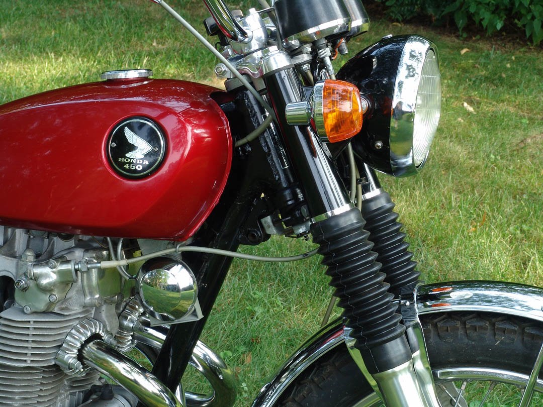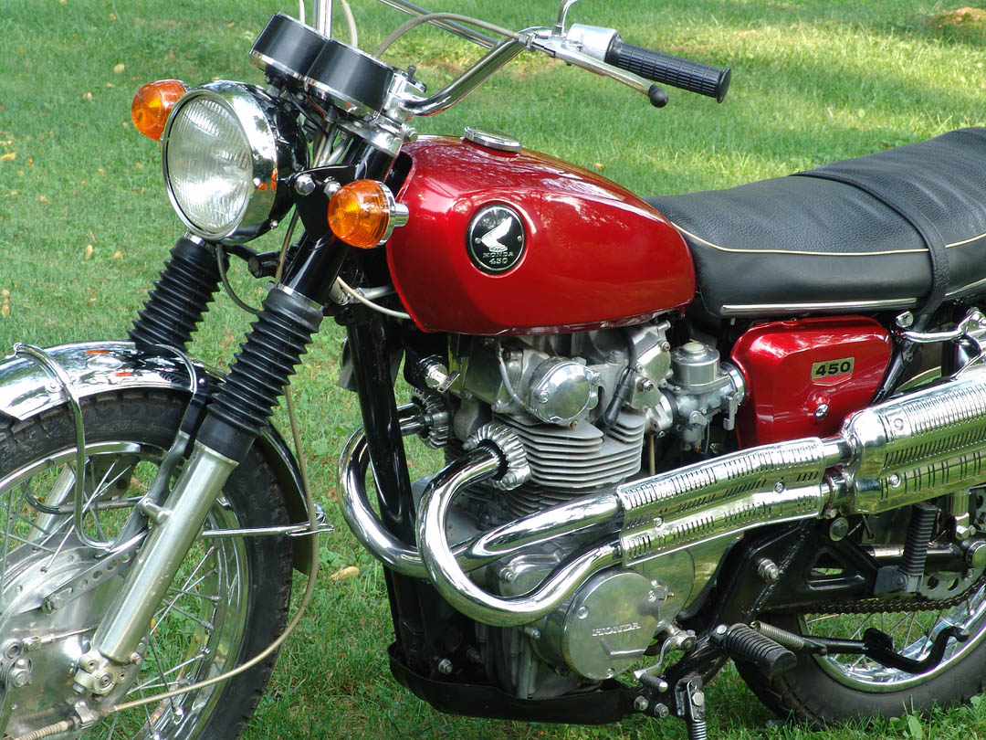 Honda's "Scrambler 450" officially arrived with the introduction of the 5-speed CL450K1 in 1968. The paint on this outstandingly well-preserved example is all original. It's rare for the candy red paint to retain its depth and luster, since it dulls and fades quickly if exposed to strong sunlight.